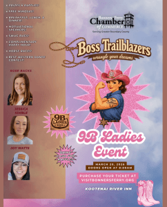 Dust off your boots and get ready for the 9B Ladies Event! Join us for a full day of fun, connection, and community at the beautiful Kootenai River Inn.