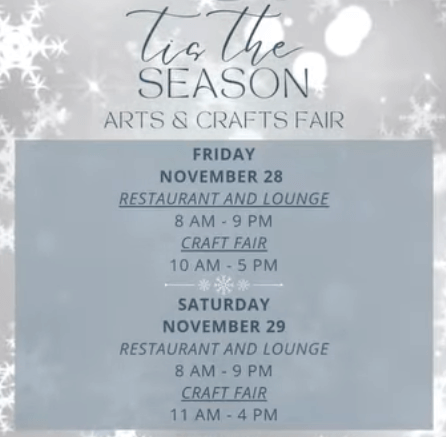 Kick off your holiday shopping in cozy, festive style at the Annual “’Tis the Season” Arts & Crafts Show/Sale at Hill’s Resort!