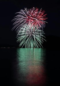 It starts at dusk. Watch from the Lake or the Beach at Elkins Resort.